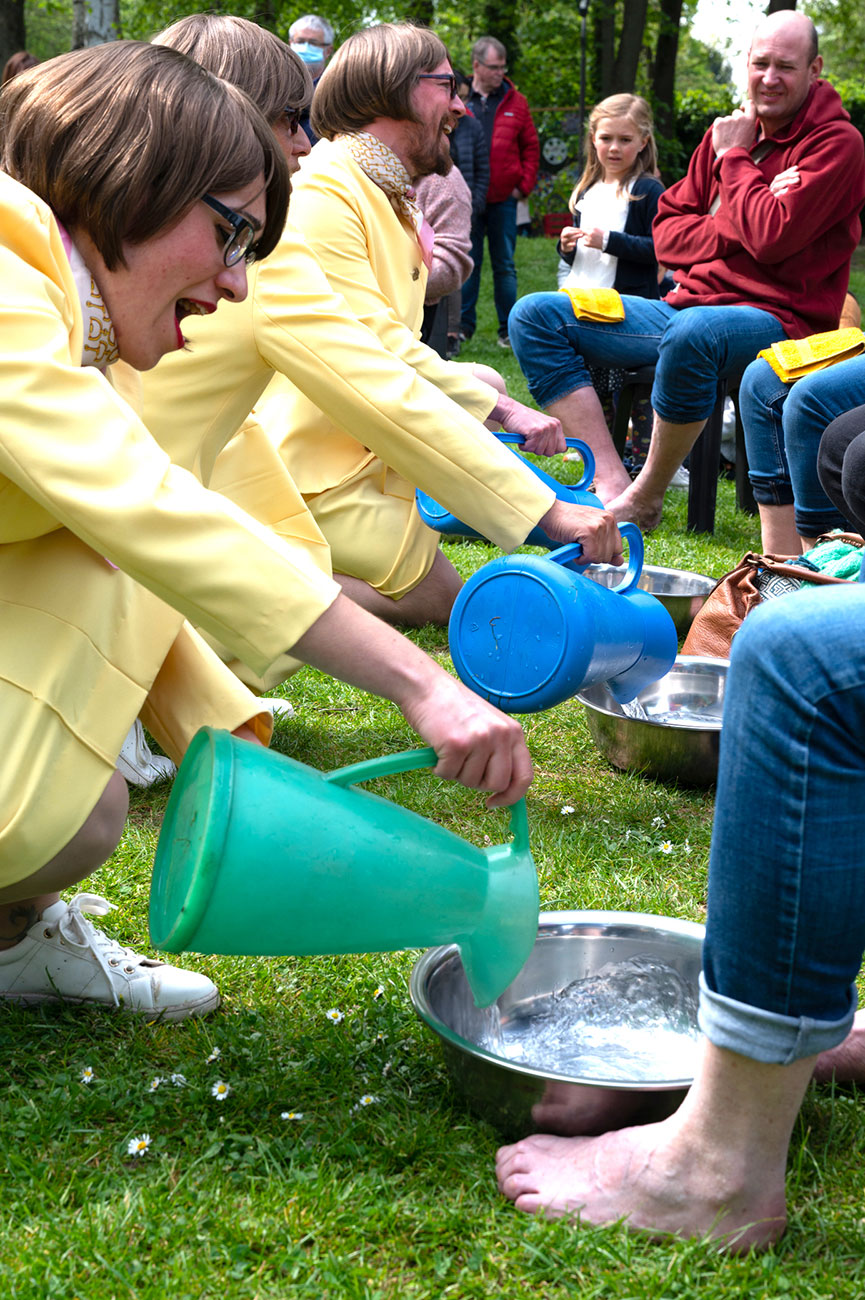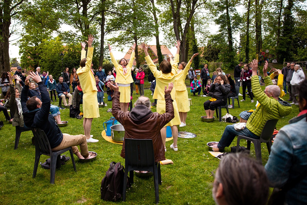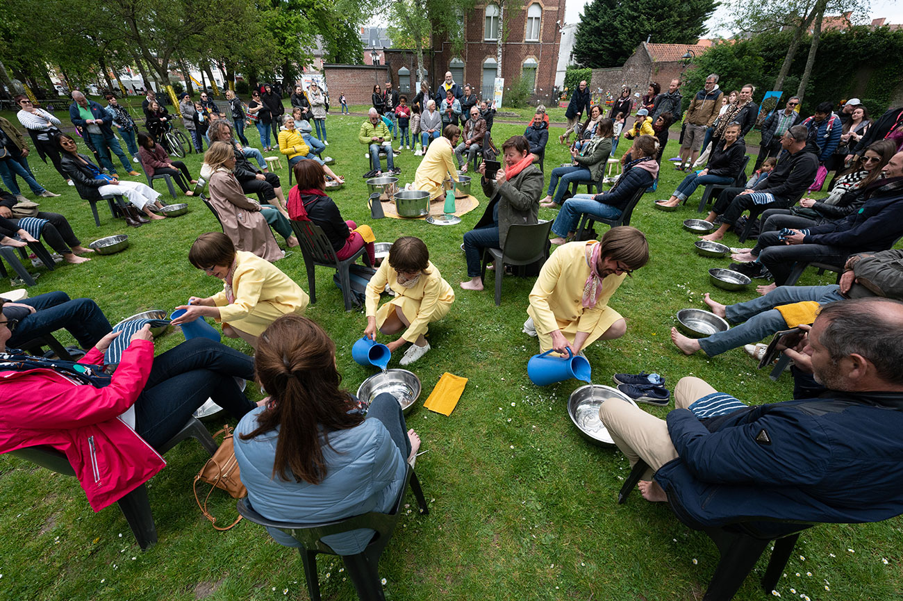 Le public est invité à baigner ses pieds dans un bon bain d’eau chaude (ou d’eau froide en cas de forte chaleur), et sera baigné de chants par un quatuor vocal drôle et virtuose. L’idée de cette expérience est de dorloter nos petons, orteils et autres voûtes plantaires, mais c’est aussi une occasion de considérer le précieux de l’eau avec humour, sérieux et décalage, grâce à Lucy Martin, personnage saugrenu incarné par 4 chanteurs / comédiens.