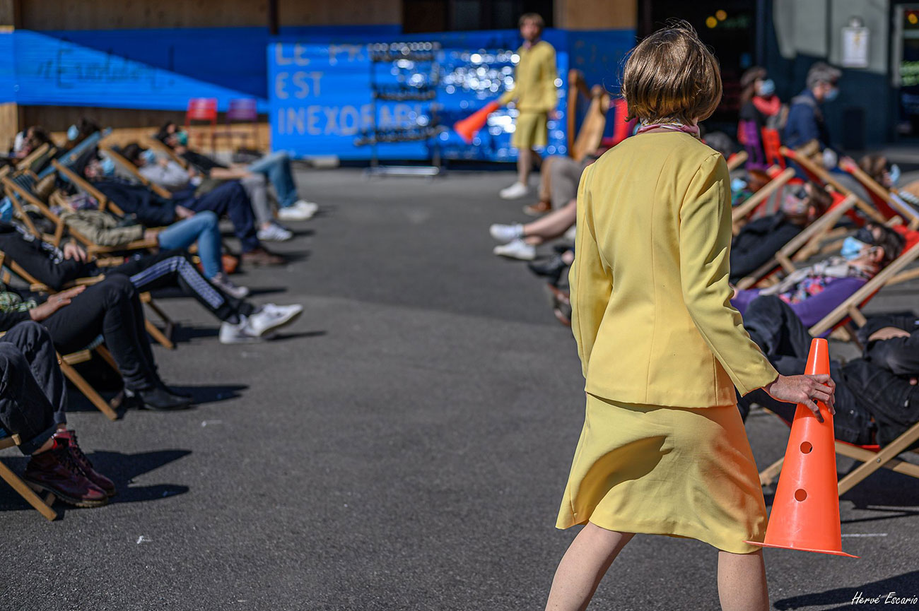 - Espace : un espace intérieur ou extérieur permettant de disposer une trentaine de chaises et pouvant accueillir des spectateur.rices « observateur.rices » / 10 x 10 m (voir fiche technique ci-dessous)