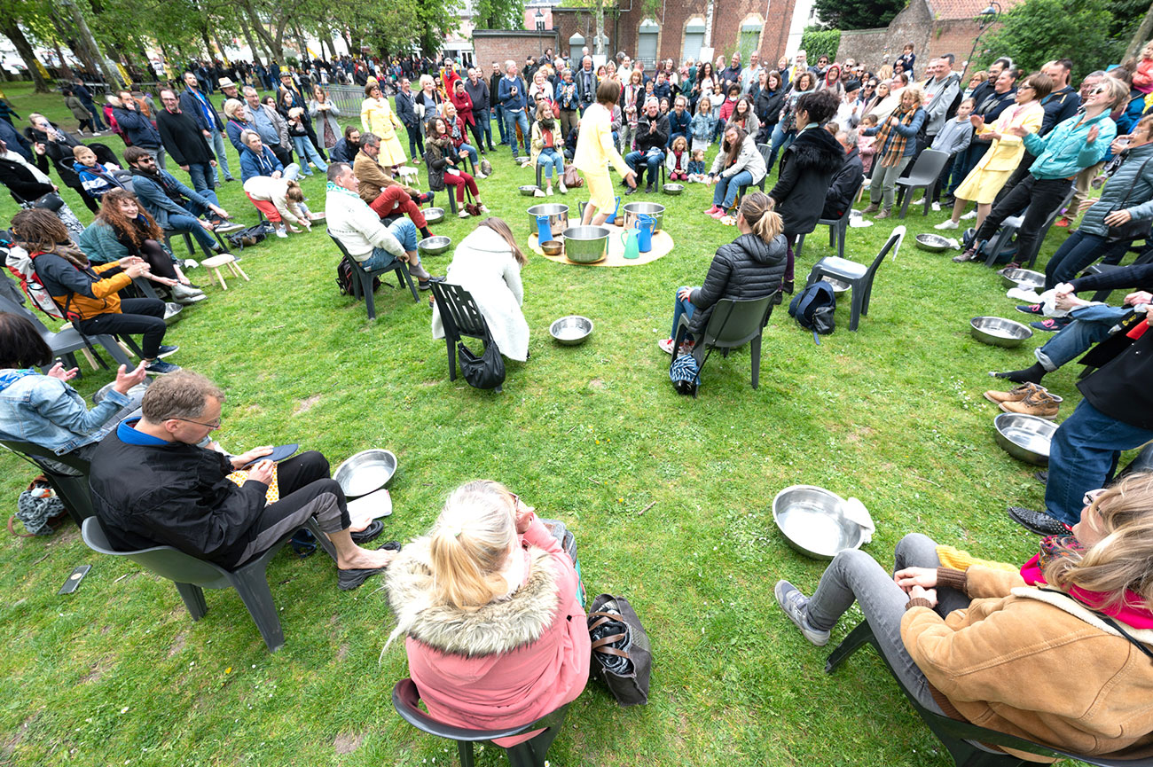 vibratoire, propose une expérience unique pour nous réconcilier, le temps d’un spectacle, avec nos orteils, talons et voûtes plantaires. Dans une ambiance joyeuse et saugrenue, elle remet au goût du jour les thermes pour petits, moyens et grands petons. Eau chaude, glacée, argileuse, infusée de thé, d’onguents bienfaisants, c’est vous qui choisissez selon l’humeur du moment. Trempez vos pieds (pour de vrai !) dans les eaux préparées par cette passionnée. Toutes les eaux de Lucy sont bonnes pour apporter bien-être, calme, remise en forme et en joie.